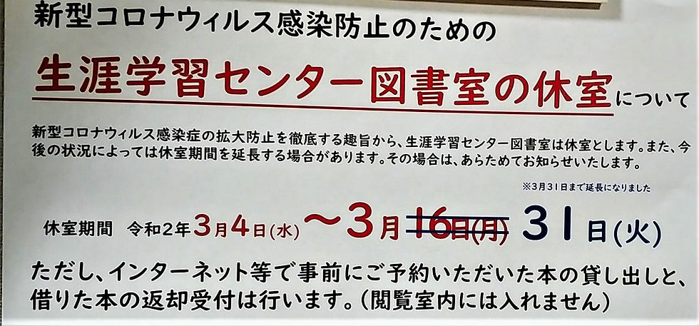 中央図書館・児童図書館・北図書館・南図書館:コミセン図書室及び生涯学習センター図書室などでは3月31日まで、インターネット予約などによる本の貸し出し・返却を行っています。